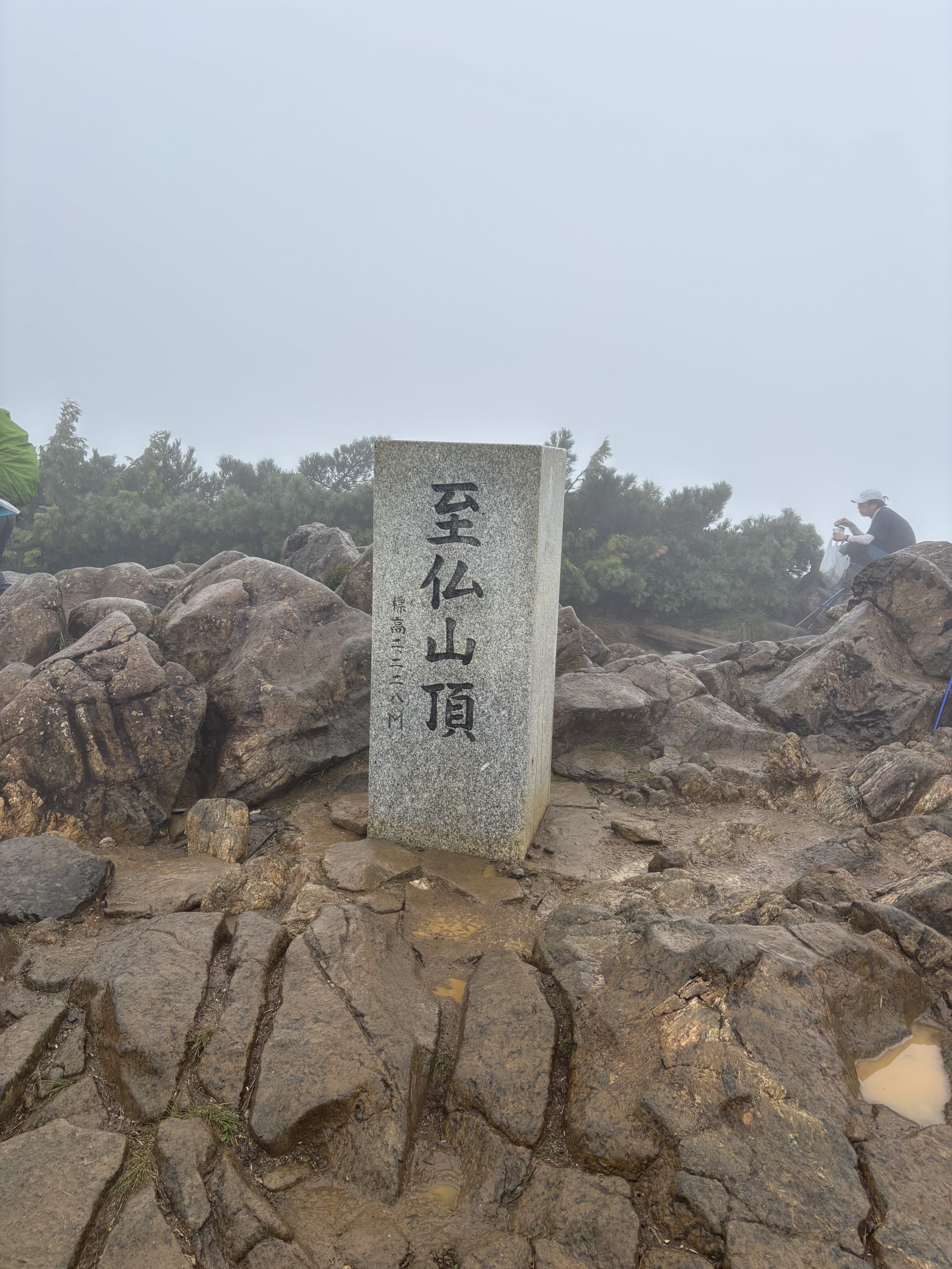 鎖場、岩場を過ぎると長い木道の階段が現れる。天国への階段と言われているそう。先が見えず心が折れそうになりながら一歩一歩丁寧に歩く。山頂付近では無情にも雨。滑る蛇紋岩の足場を確認しながら小至仏山へ向かう。