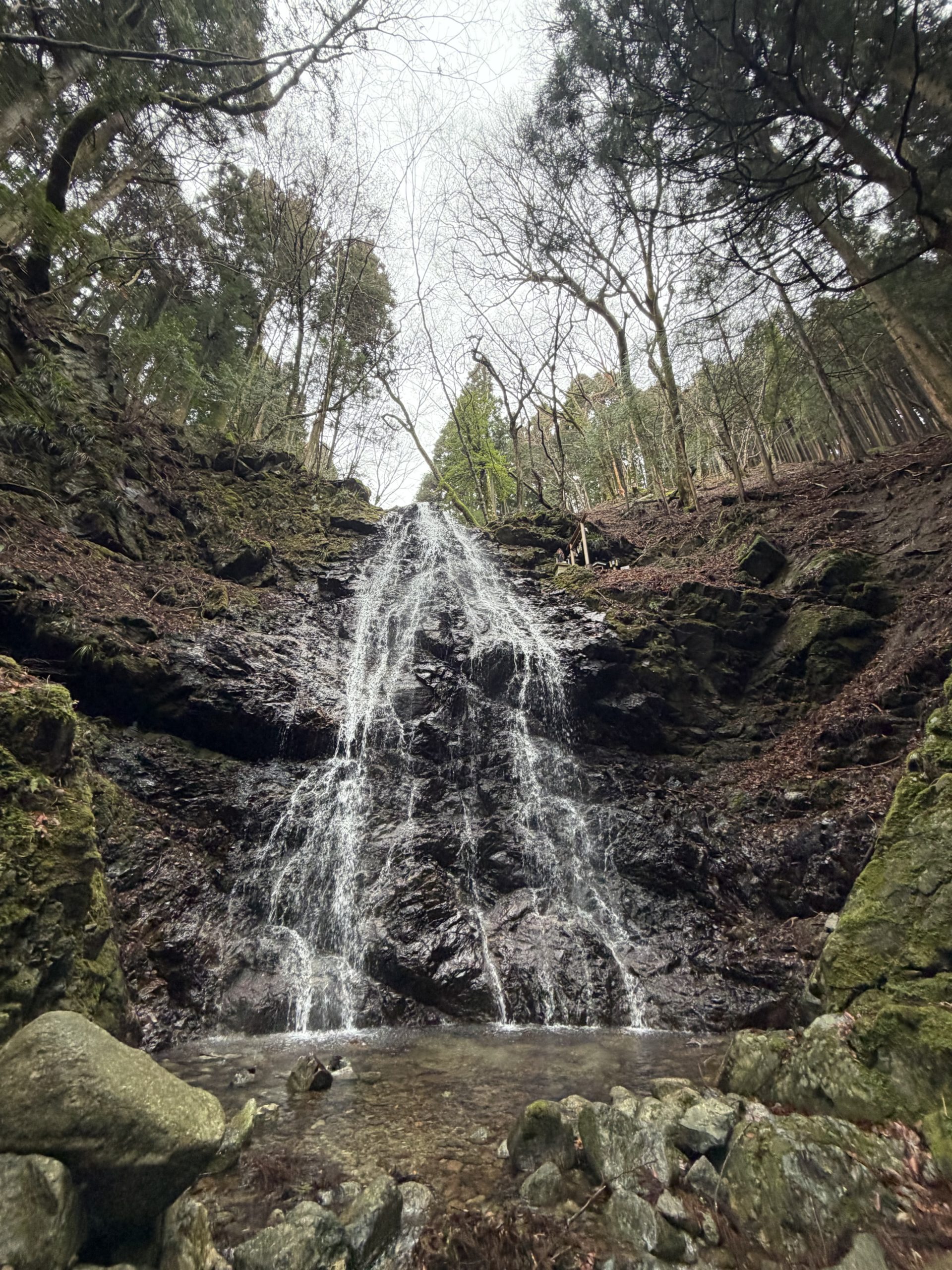 登山口は雨あがりで登山者が少なく駐車場に1台しか停まっておらず人気は無く静かな山登りになりました。登山コースは不動滝ルートを選び雪解けと前日の雨で水量の多い大滝と記念撮影を終え九十九折が続く登山道を登り山頂を目指しました。