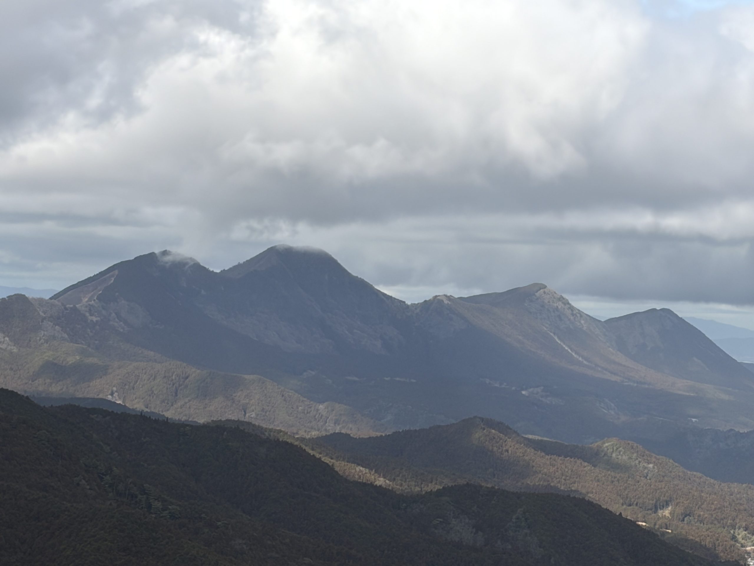 昼食は風を避けるため8合目にある無人の山小屋で休憩をとり登尾ルートを下山すると天候が回復して山頂では見えなかった倶留尊山(くろそやま)や曾爾(そに)高原の山々が顔を出してくれました。