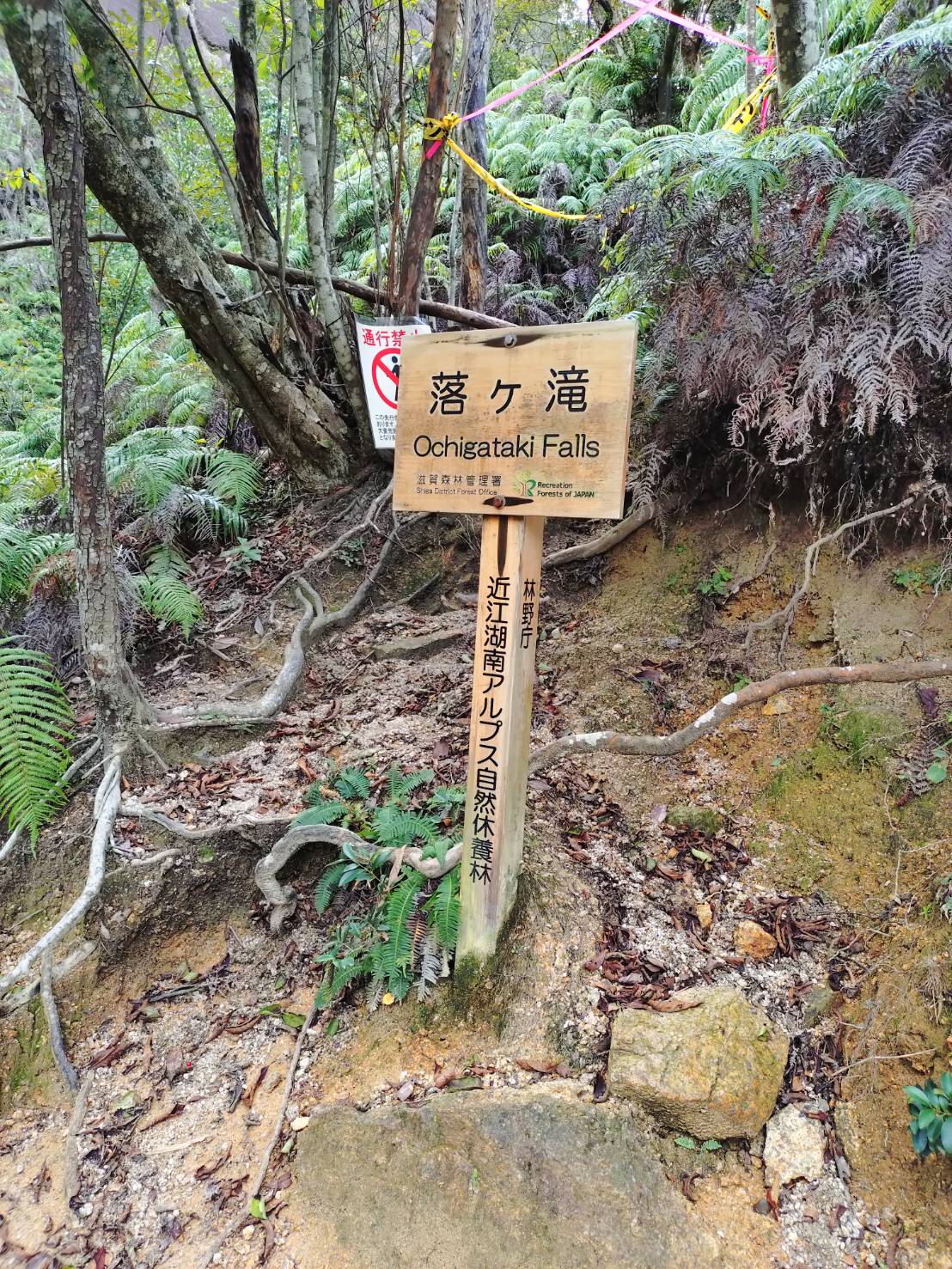 登山道に入って直ぐにリスのお出迎え。リスに癒やされシダのジャングルを進み落ヶ滝に寄り道。