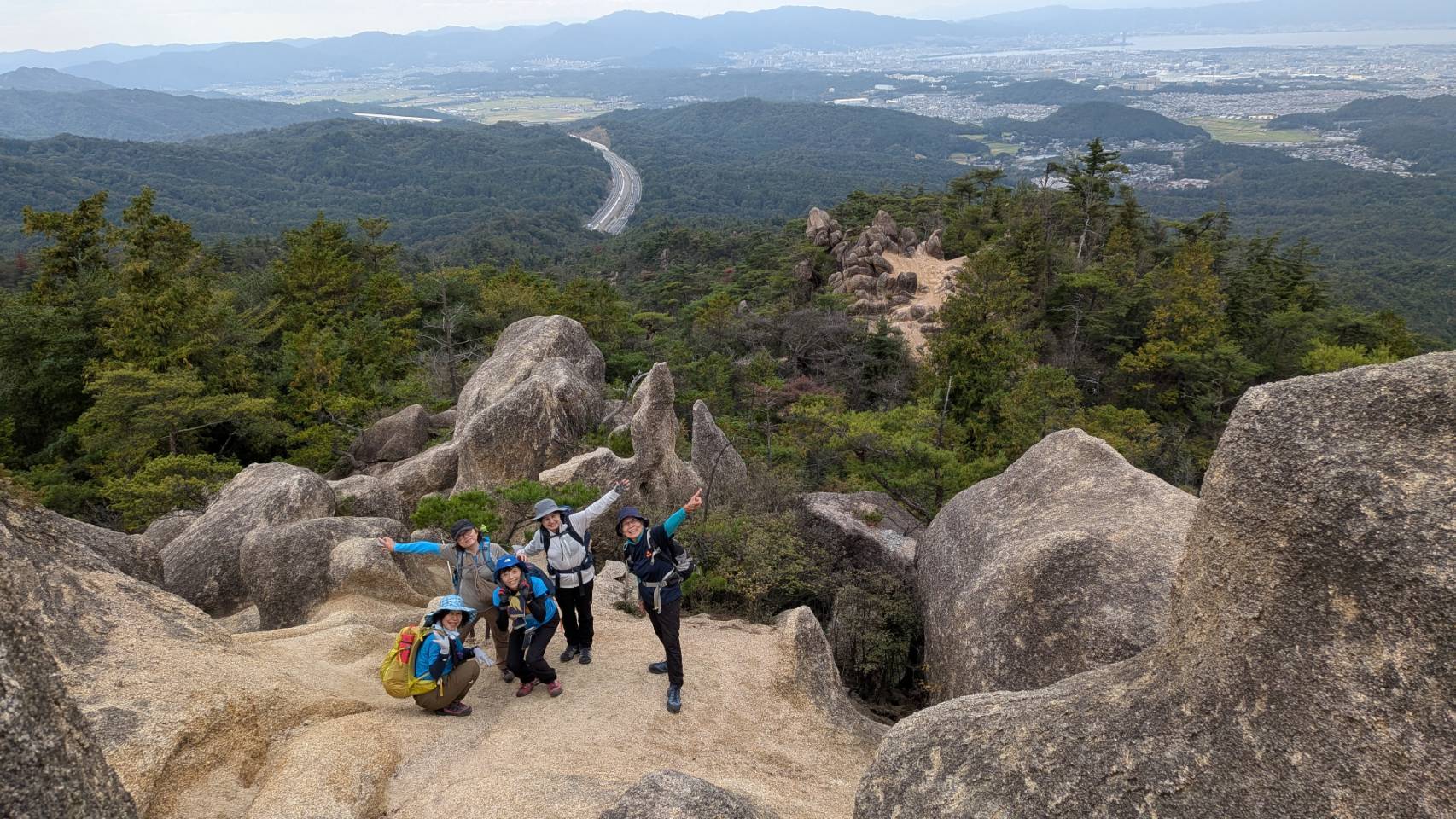 まるで天狗の鼻がいくつも付いた様な本日のメイン天狗岩ではたっぷり時間をとり、天に突き出たいくつもの岩を登り楽しみました。眺望も良く気持のいい場所です。