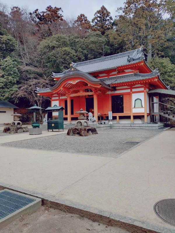 奥之院にはこの行程唯一のトイレがあります。夫婦岩を経て長い石階段を下り中山寺に到着。