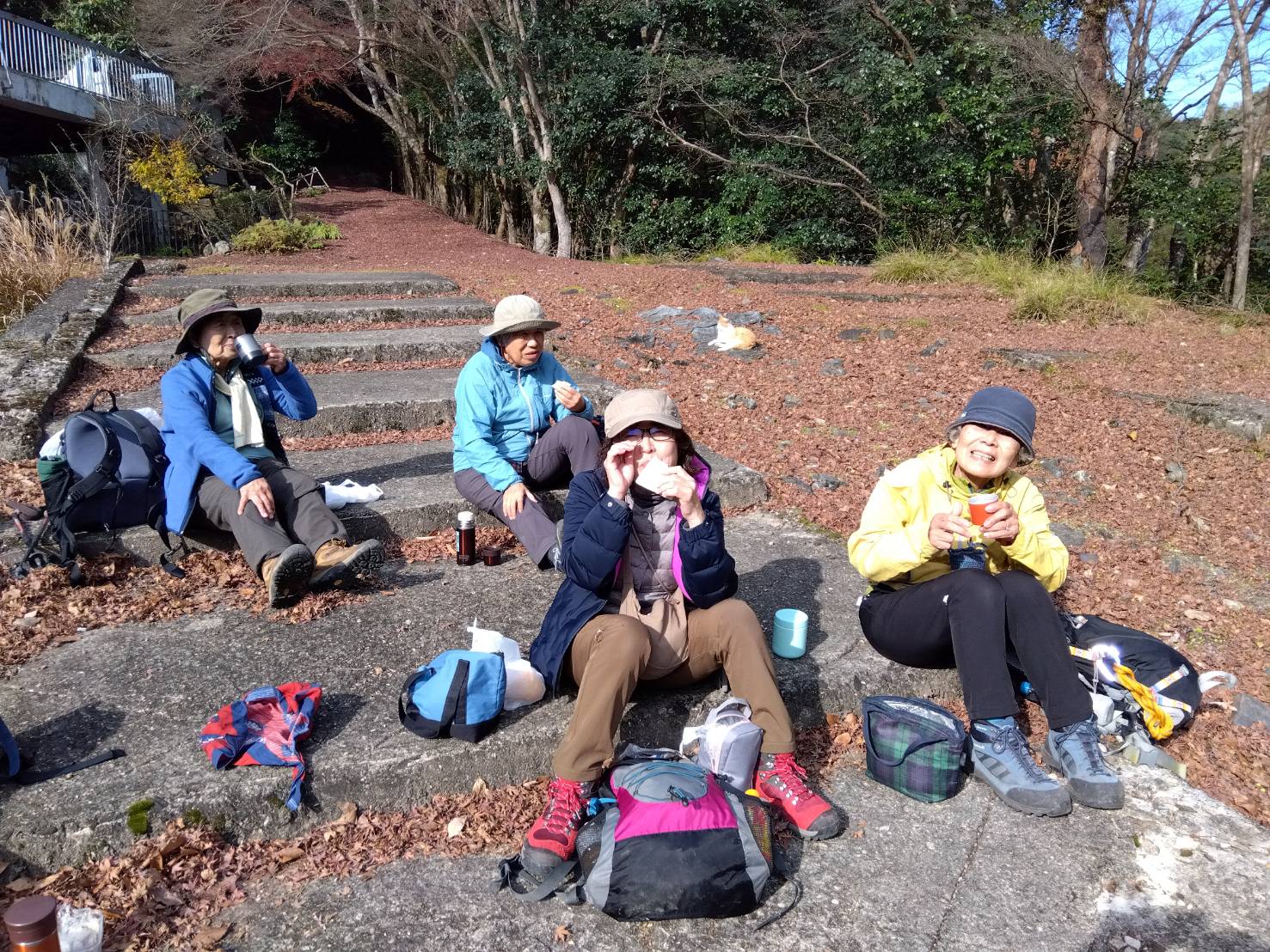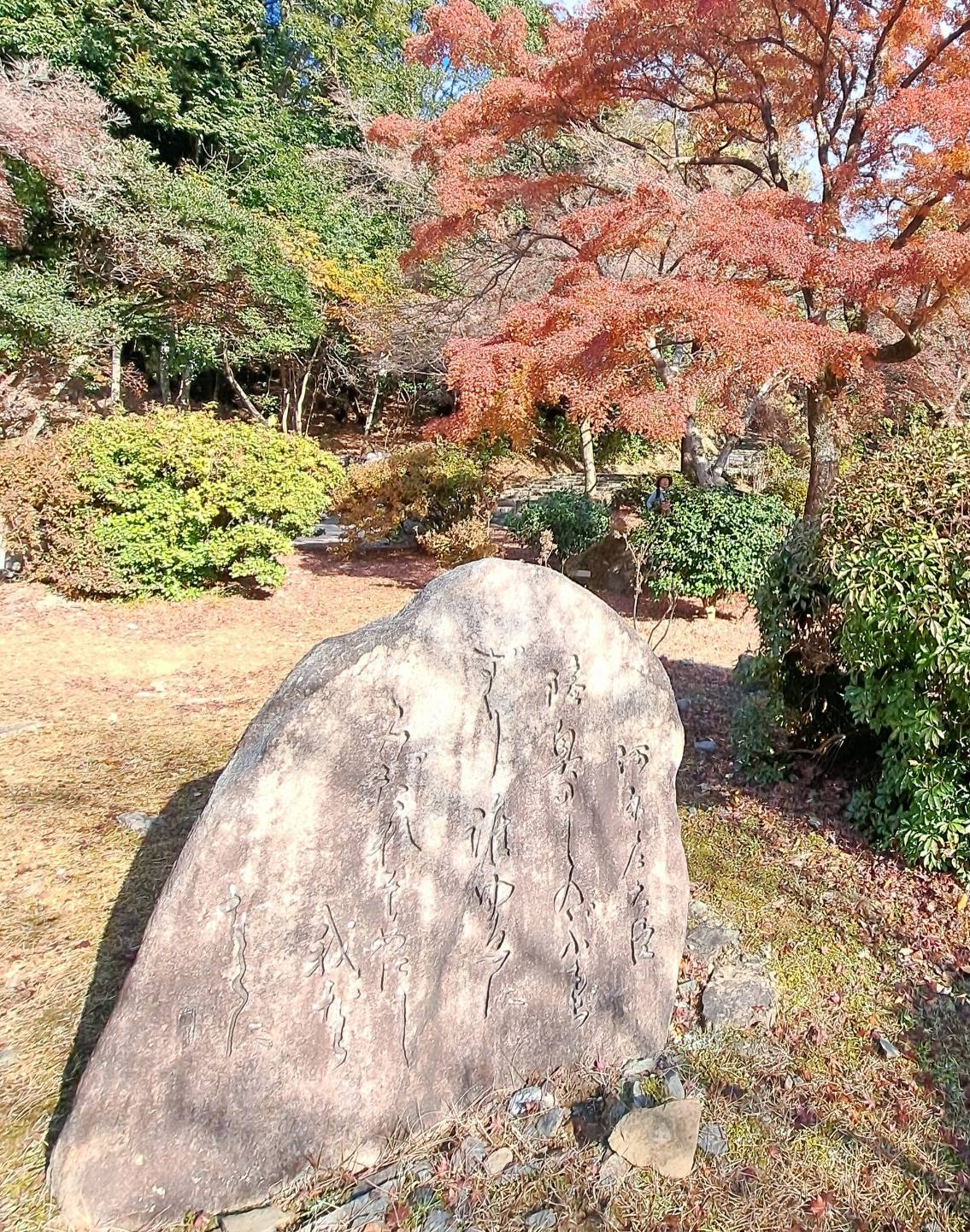 嵐山、万葉公園は落葉盛んで我々のみの静けさ。
