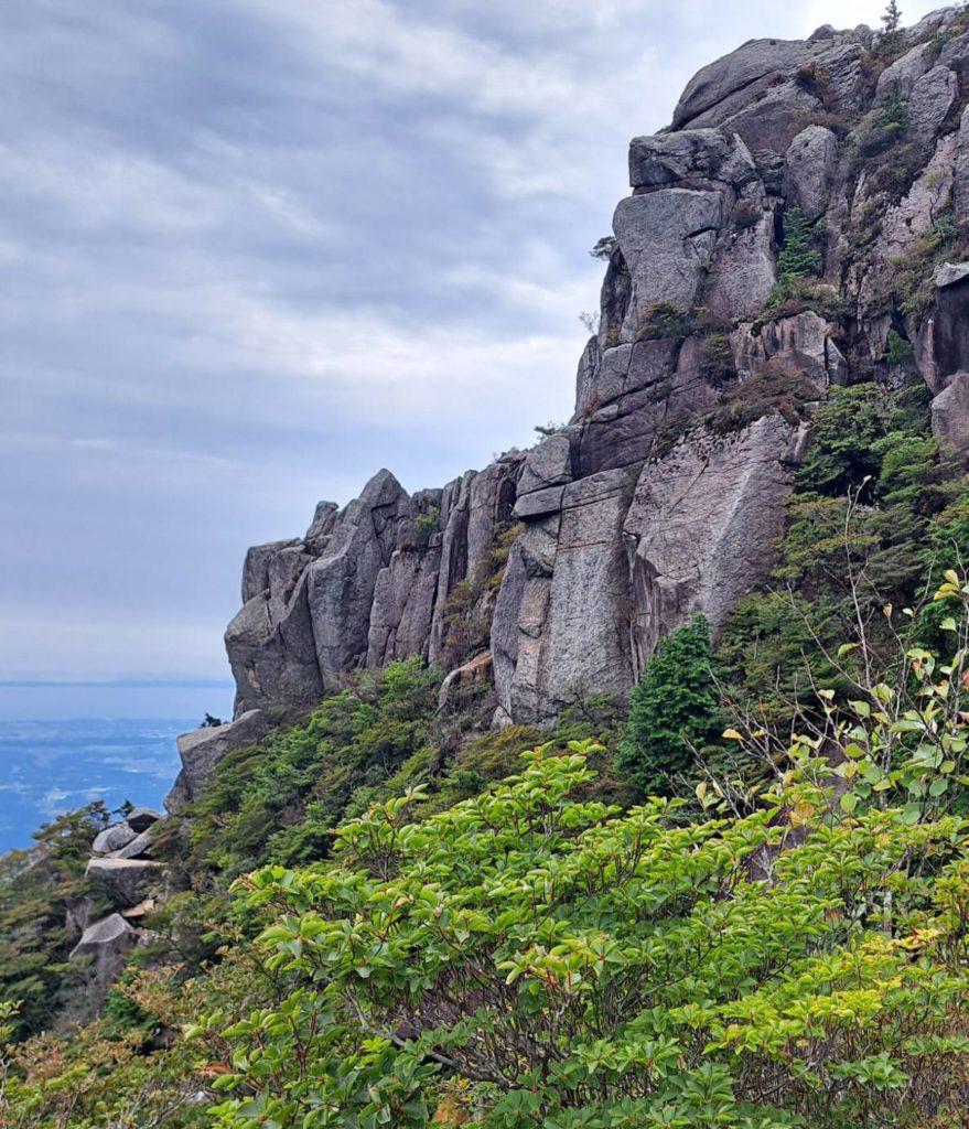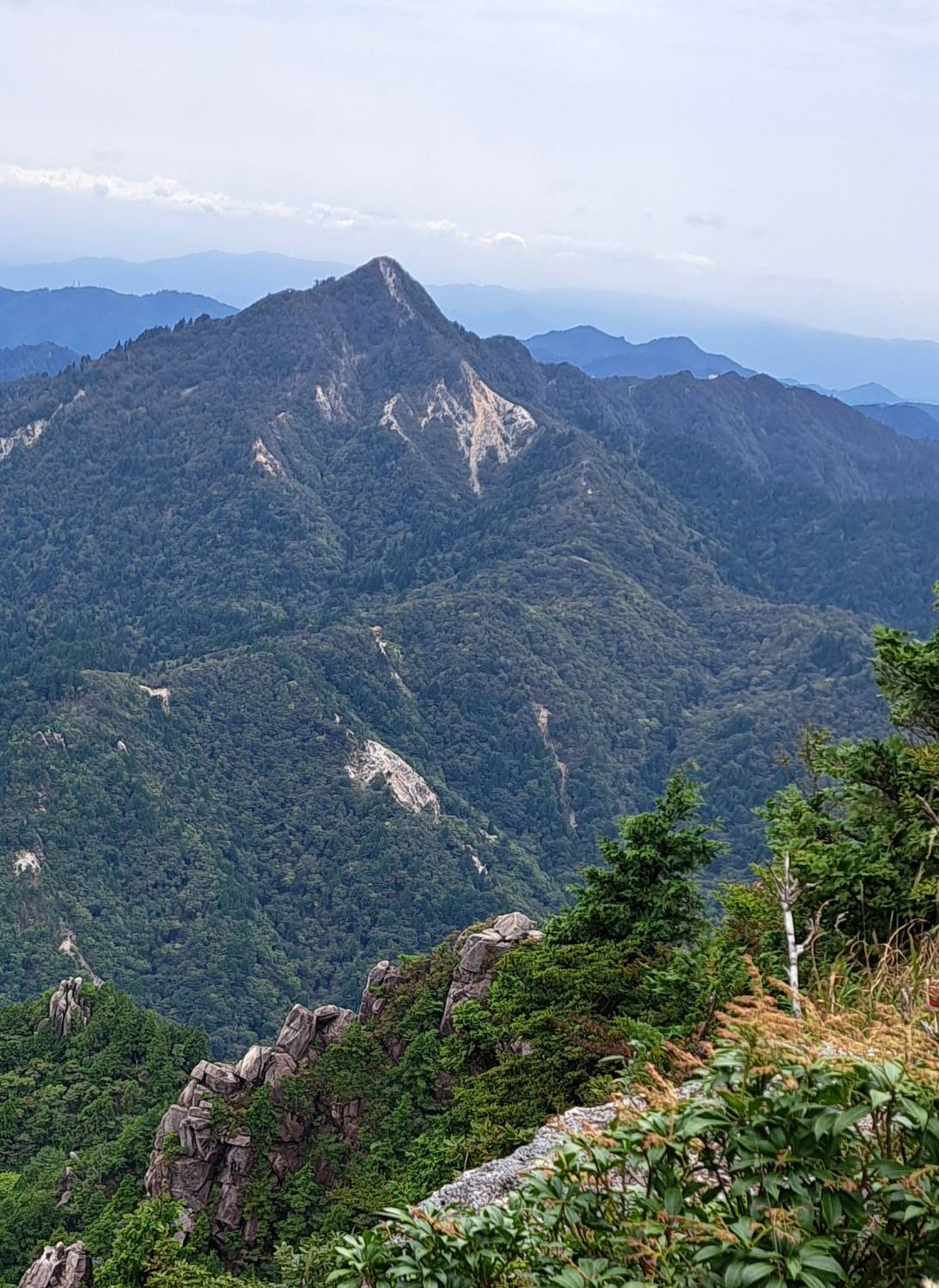 何年振りかなぁ~。不安を抱え歩きなれた中道登山道をスタート。さすが鈴鹿の山!大岩がゴロゴロ。段差が大きく腿に堪える。足場を確認し高度を上げるうち振り向けば知多半島や伊勢湾、展望しながら来て良かったぁ~と。