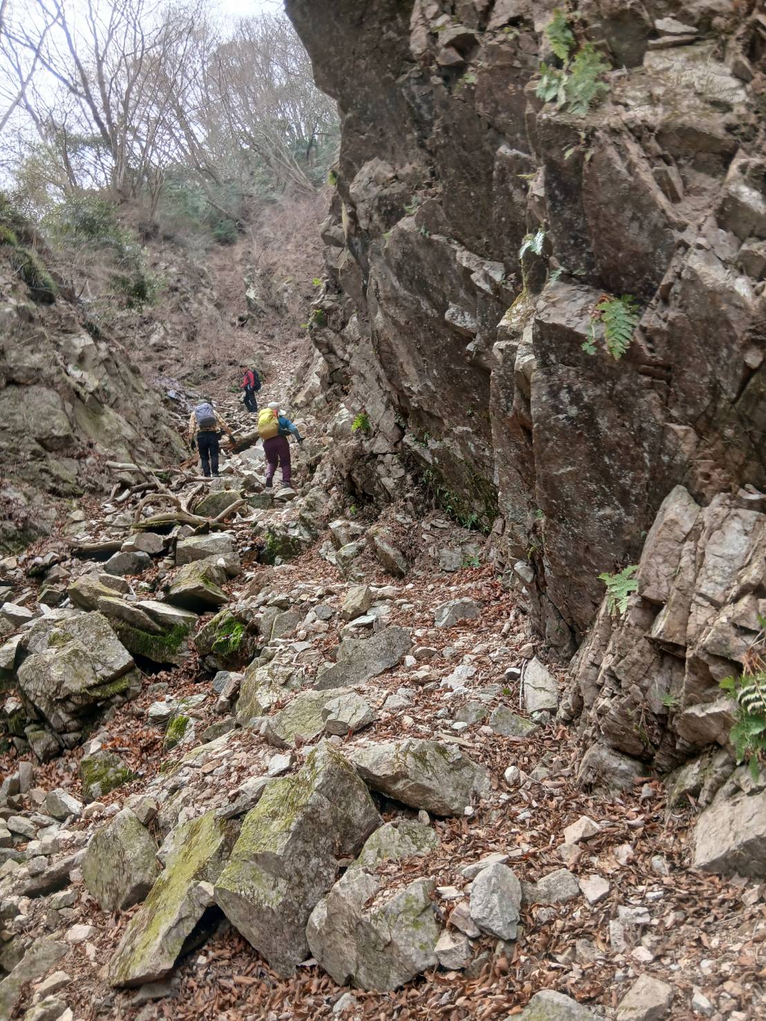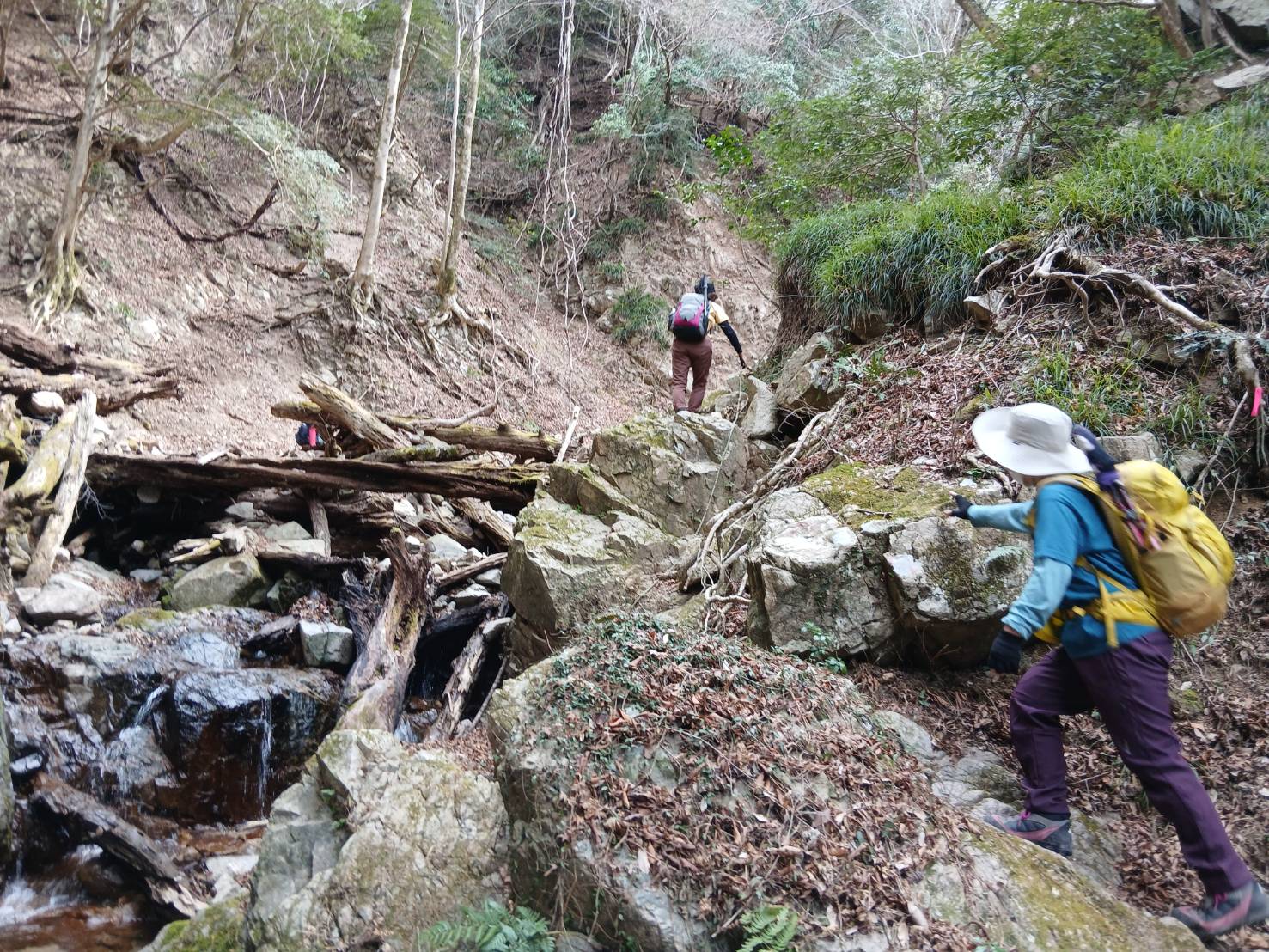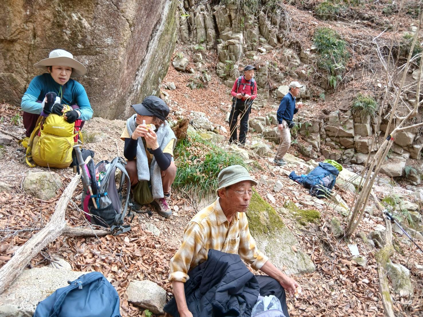 冬季には氷瀑を楽しみに多くの登山客で賑わう白石谷コース。3月にも入るとすれ違う人も少ない。白石谷コース熟練者コースとあり、道は流木や倒木があり荒れていて赤いテープを見つけながら進む。今日このコースを以前登ったことのあるレジェンドが同行してくださり難路も迷わず歩けました。お昼過ぎに六甲頂上下のトイレ前の広場で昼食。下山はレジェンドおすすめの白水峡コースを下山。後鉢巻山~白水山(771m)~右手に白水峡を見ながら白水峡墓地霊園バス停に14:20着。今回のコースはハードなコースで必ずコース経験のある方と同行すると良いと思います。