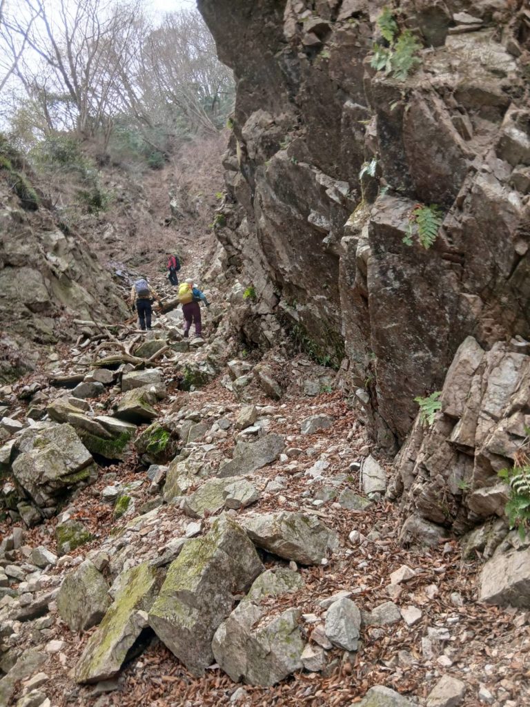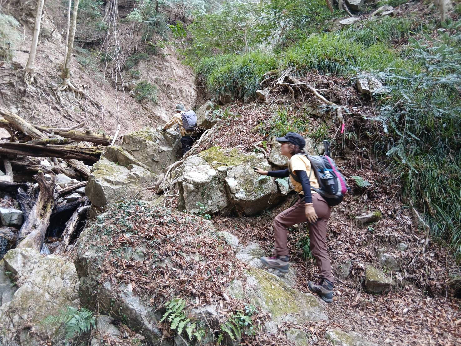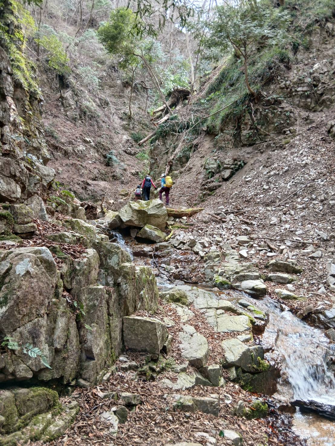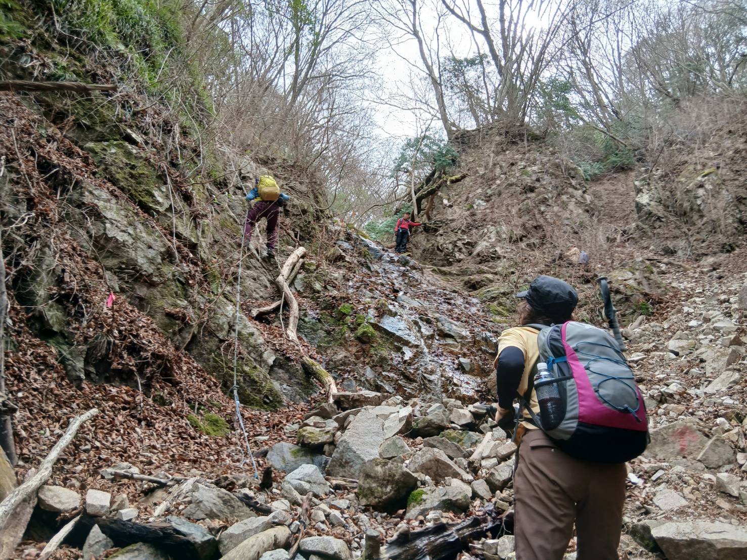 冬季には氷瀑を楽しみに多くの登山客で賑わう白石谷コース。3月にも入るとすれ違う人も少ない。白石谷コース熟練者コースとあり、道は流木や倒木があり荒れていて赤いテープを見つけながら進む。今日このコースを以前登ったことのあるレジェンドが同行してくださり難路も迷わず歩けました。お昼過ぎに六甲頂上下のトイレ前の広場で昼食。下山はレジェンドおすすめの白水峡コースを下山。後鉢巻山~白水山(771m)~右手に白水峡を見ながら白水峡墓地霊園バス停に14:20着。今回のコースはハードなコースで必ずコース経験のある方と同行すると良いと思います。