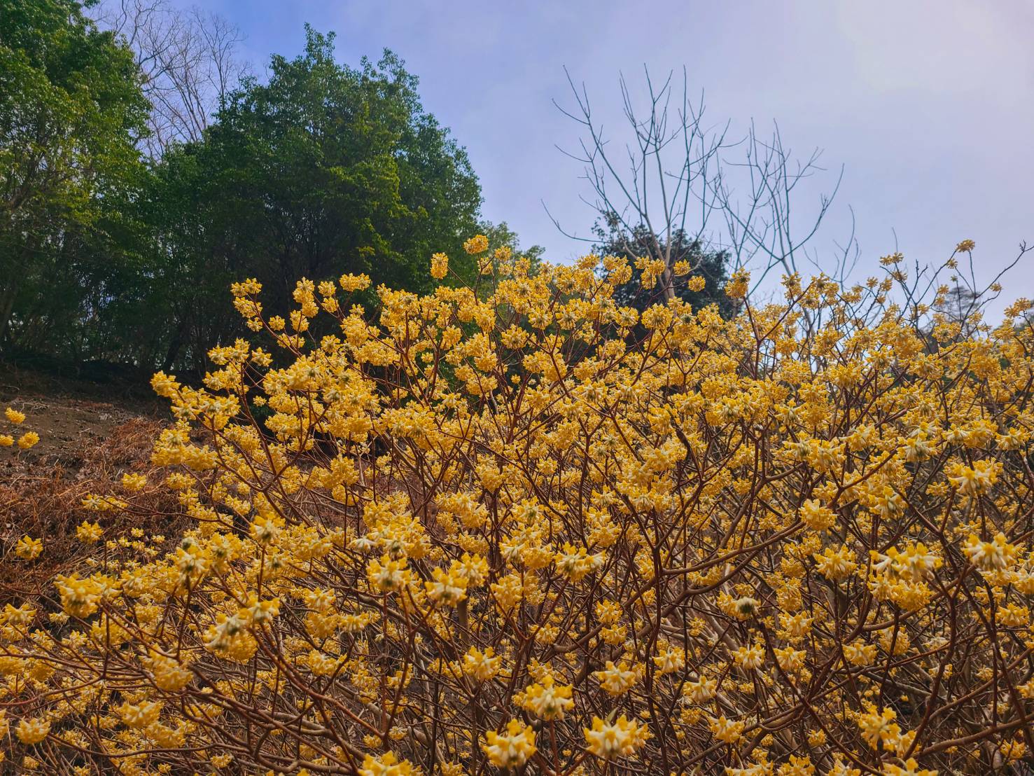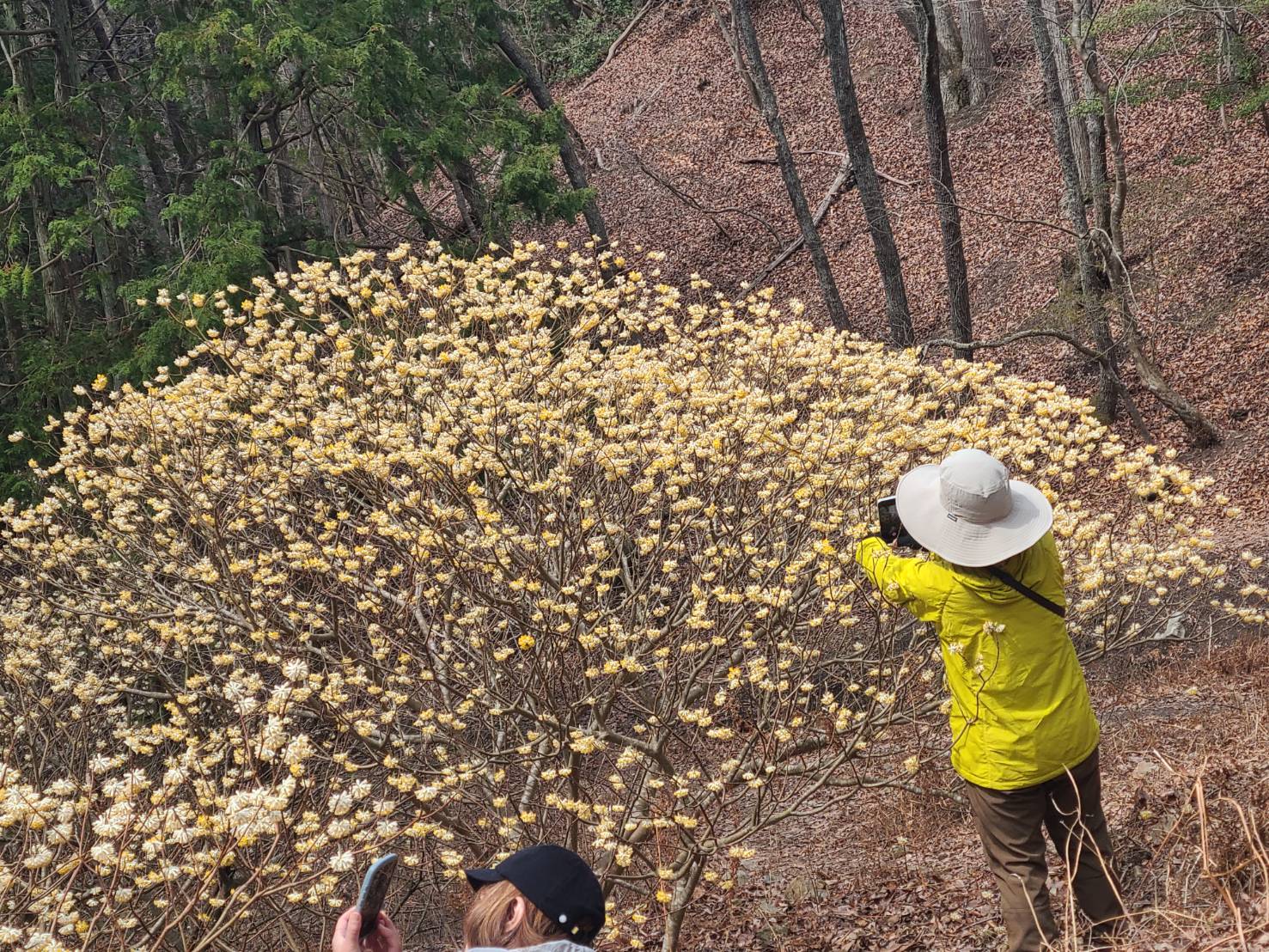 お昼の休憩はたっぷり時間を取りました。お弁当食べて、ゆっくりミツマタを堪能し、写真撮影にも気合いが入ります!